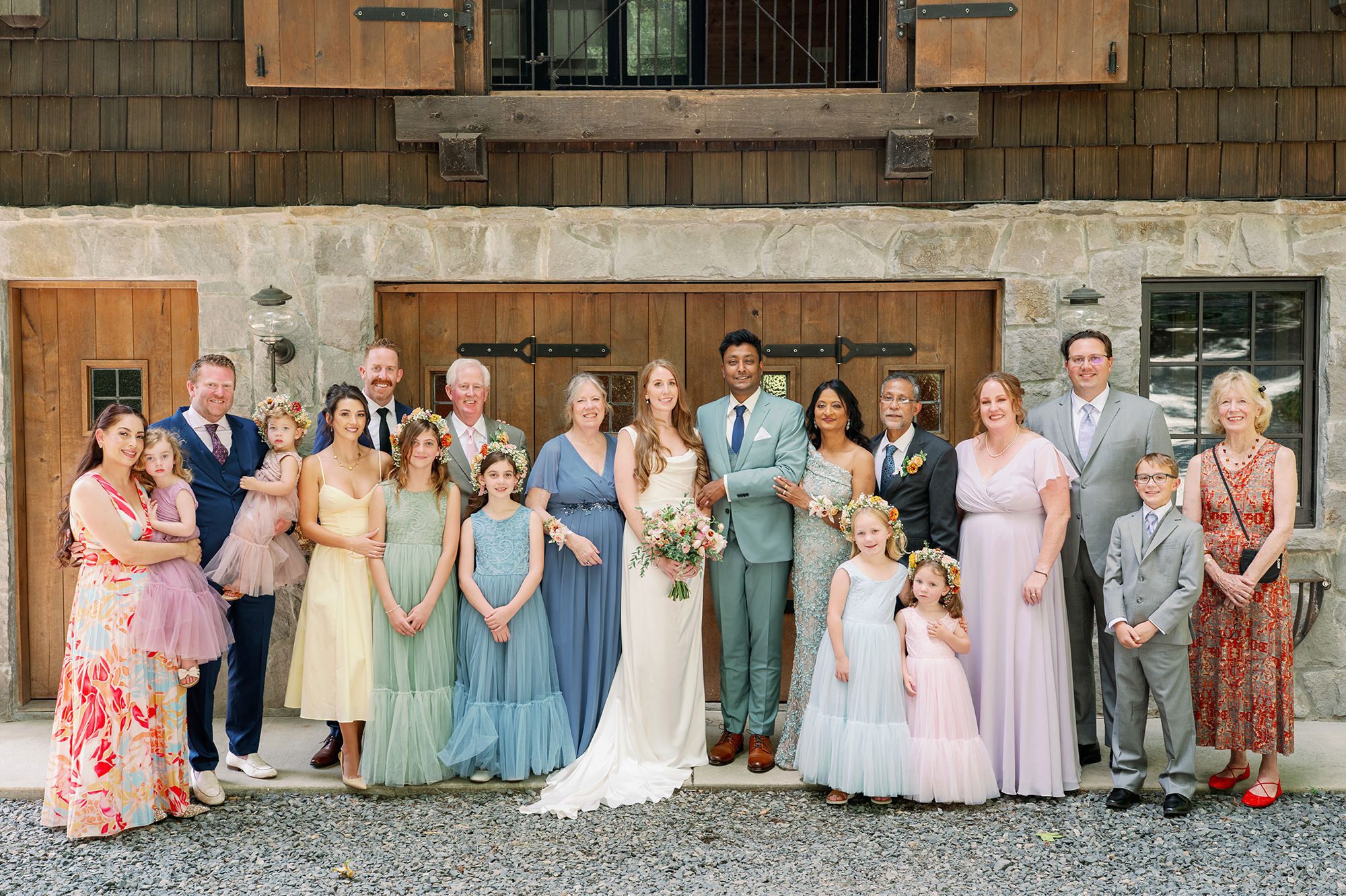 One of the standout features of Bella Luna Farms is the breathtaking Grape House, a beautiful and distinctive pergola draped in vines, perfect for intimate celebrations, cocktail hour and al fresco dining. The surrounding orchards and vineyard add to the venue’s rustic charm and provide beautiful backdrops for wedding photos.. The gardens at Bella Luna Farms are meticulously maintained and provide a variety of scenic spots for wedding festivities.